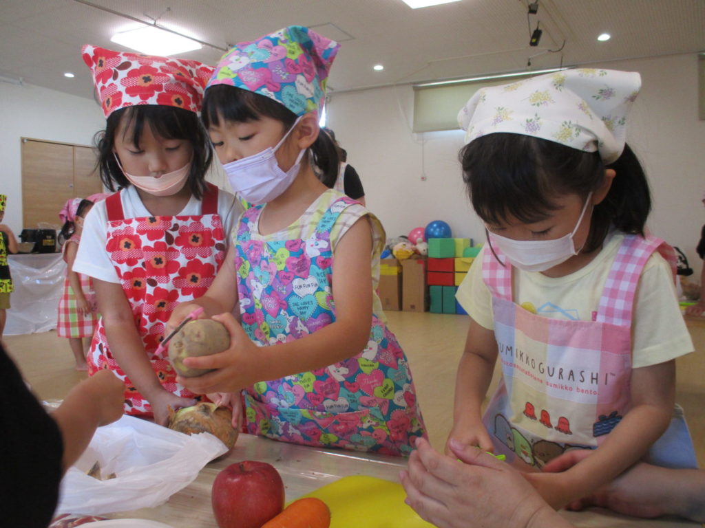夕食のカレー作り!教えてもらいながらみんな上手に皮むきや切り方をしましたよ!
