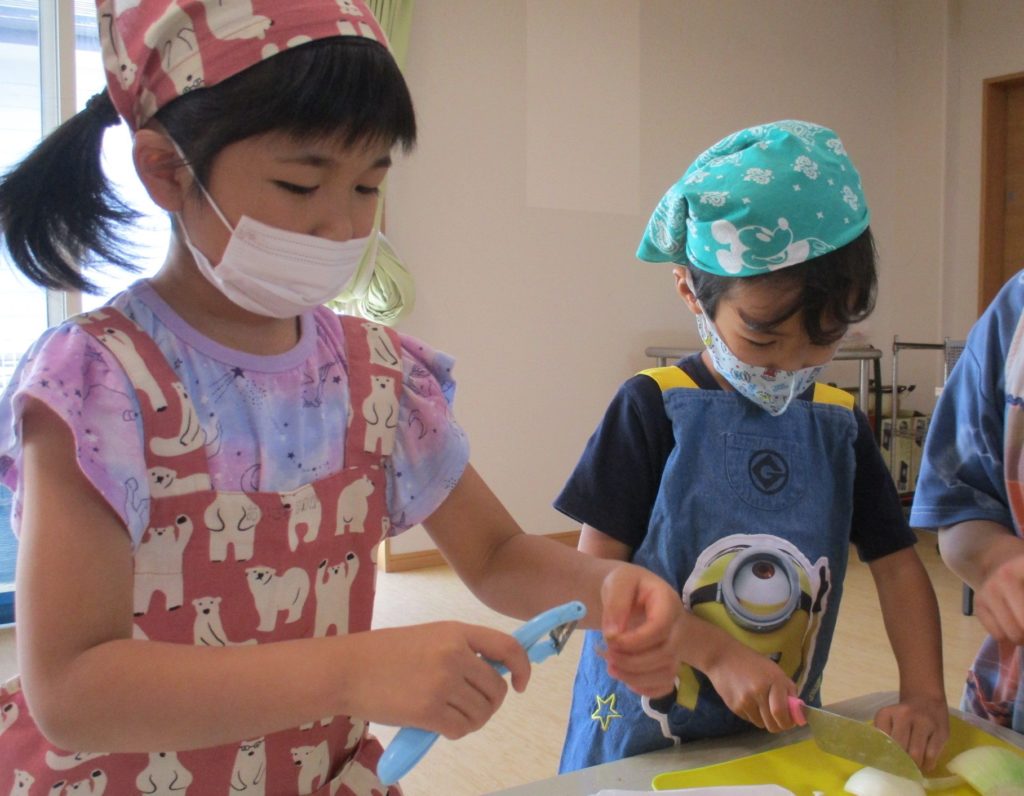 包丁を使うのドキドキ♡玉ねぎ…目にしみる💦みんなすごく真剣に取り組んでいましたよ!
