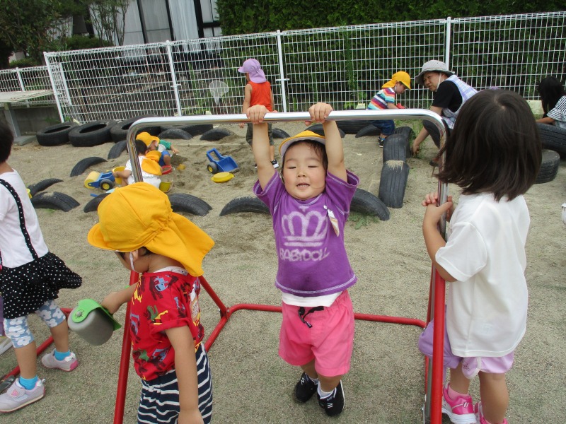 鉄棒にぶら下がったよー!! 先生数えてねー!😆