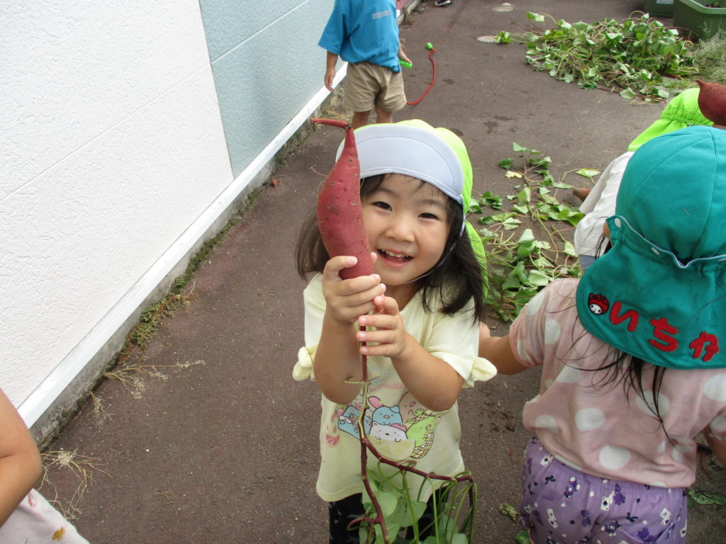 園の畑の芋掘りをしました😆大きな芋に子どもたちもワクワクしながら芋を掘りました🍠✨