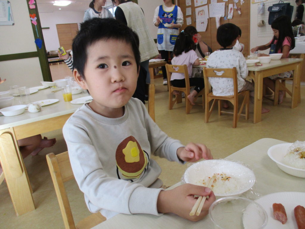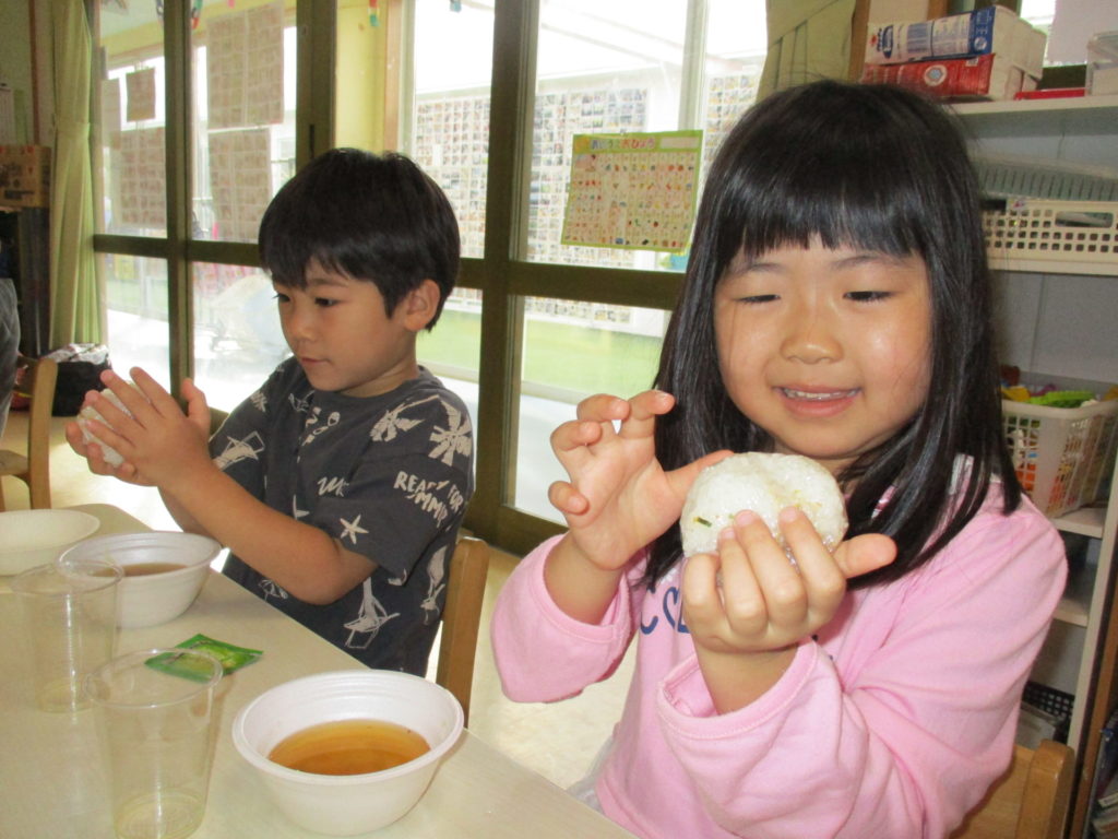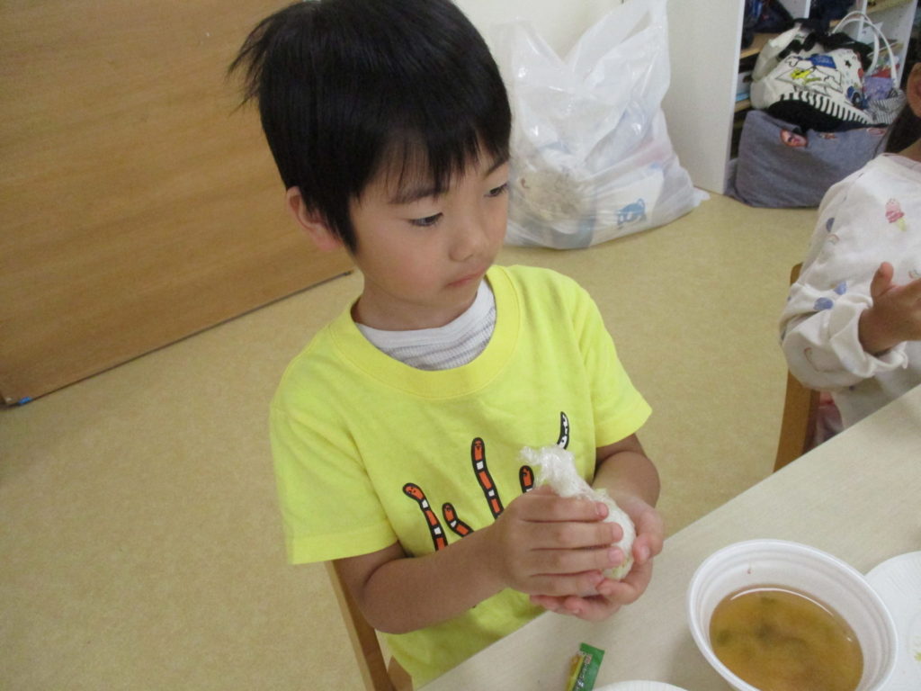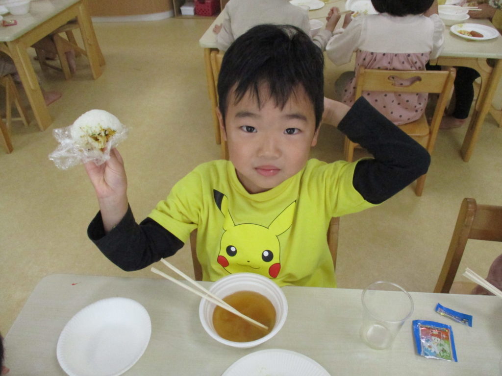 おみぎりも自分で握って食べました🍙🍙🍙✨自分で握ったおにぎりの味はどうかな❓