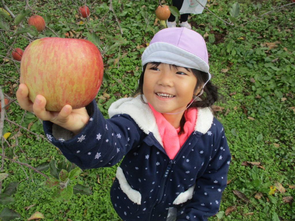 優しいお兄さん、お姉さんとこんなに大きなりんごを収穫することができました🍎