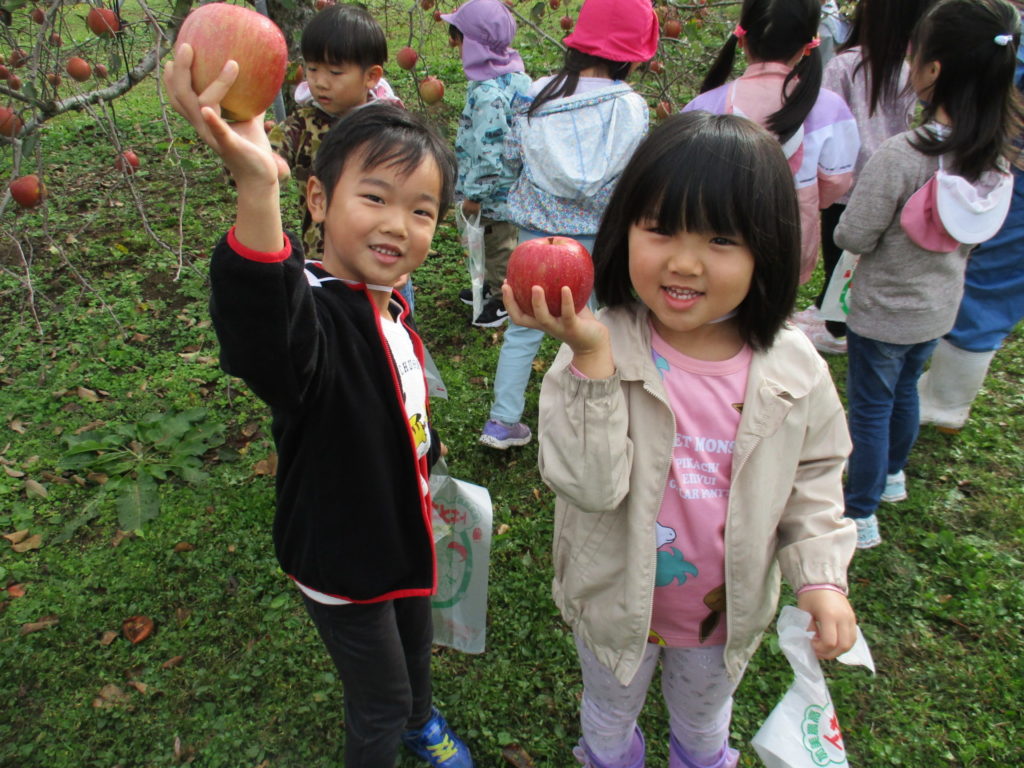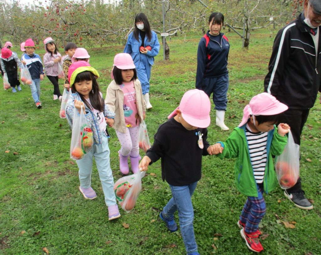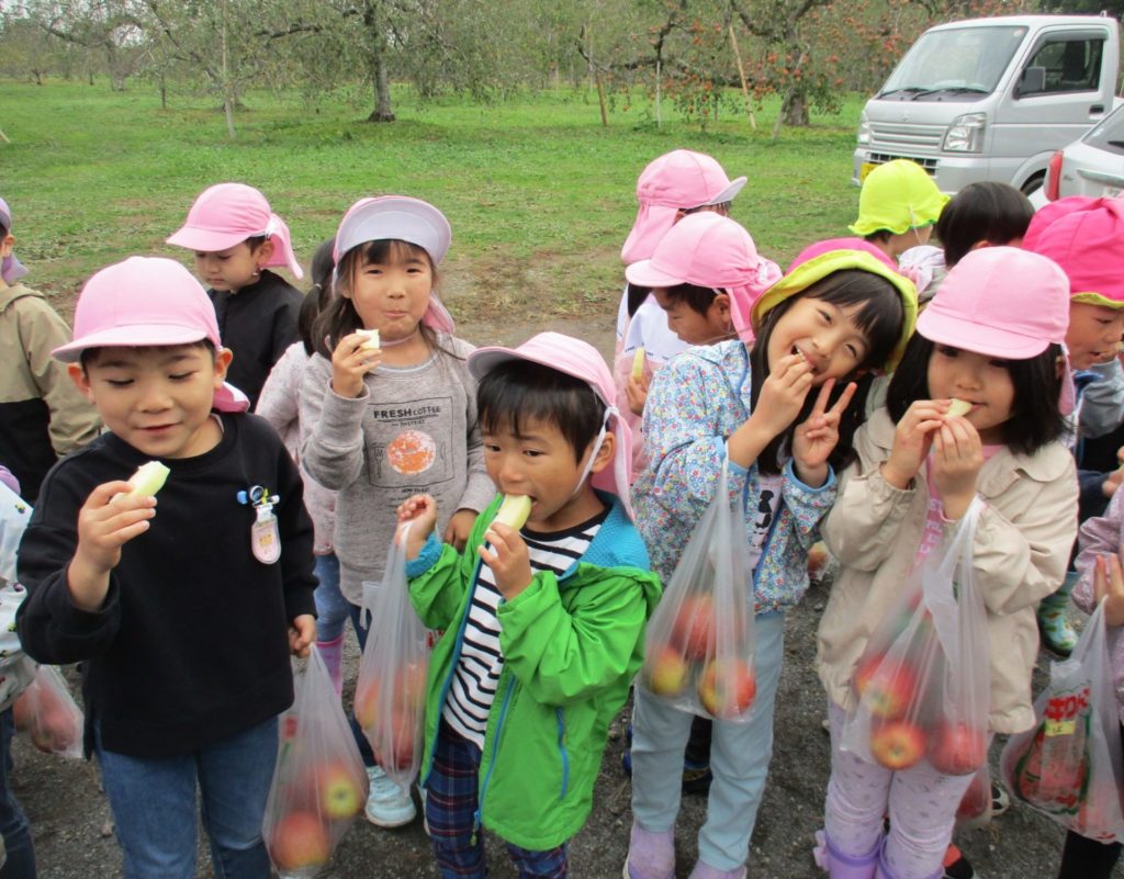 加美農業高校の生徒さんや先生と一緒にりんご狩りをしてきました🍎自分で上手にリンゴがとれたよ🍎✨