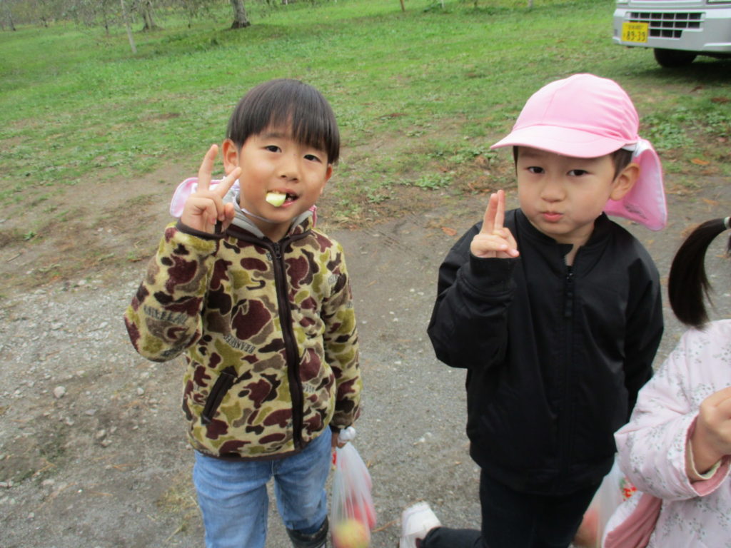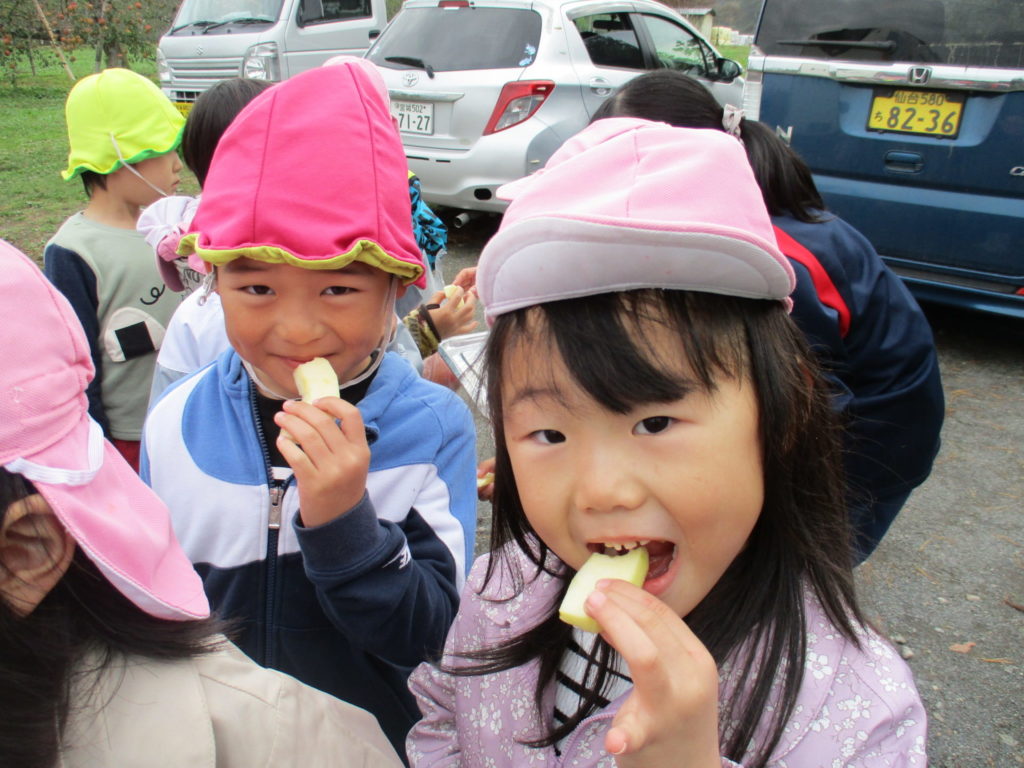 りんごの試食もさせてもらいました🍎「あまいね」「おいしいね」と言いながらいっぱい食べました😊✨