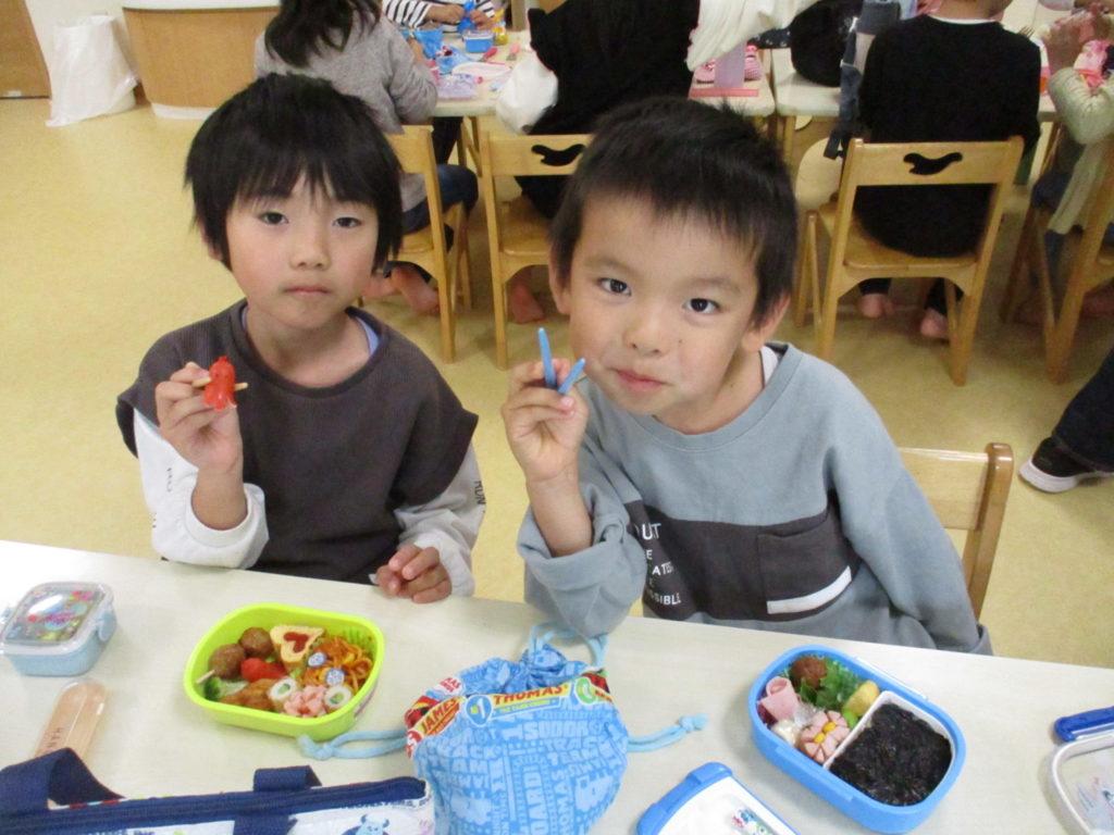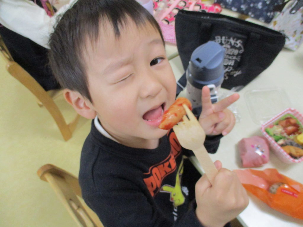 保育園に戻ってから手作りお弁当を食べたよ🍱お弁当ありがとう💕美味しかったよ😆😆😆