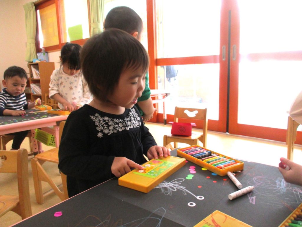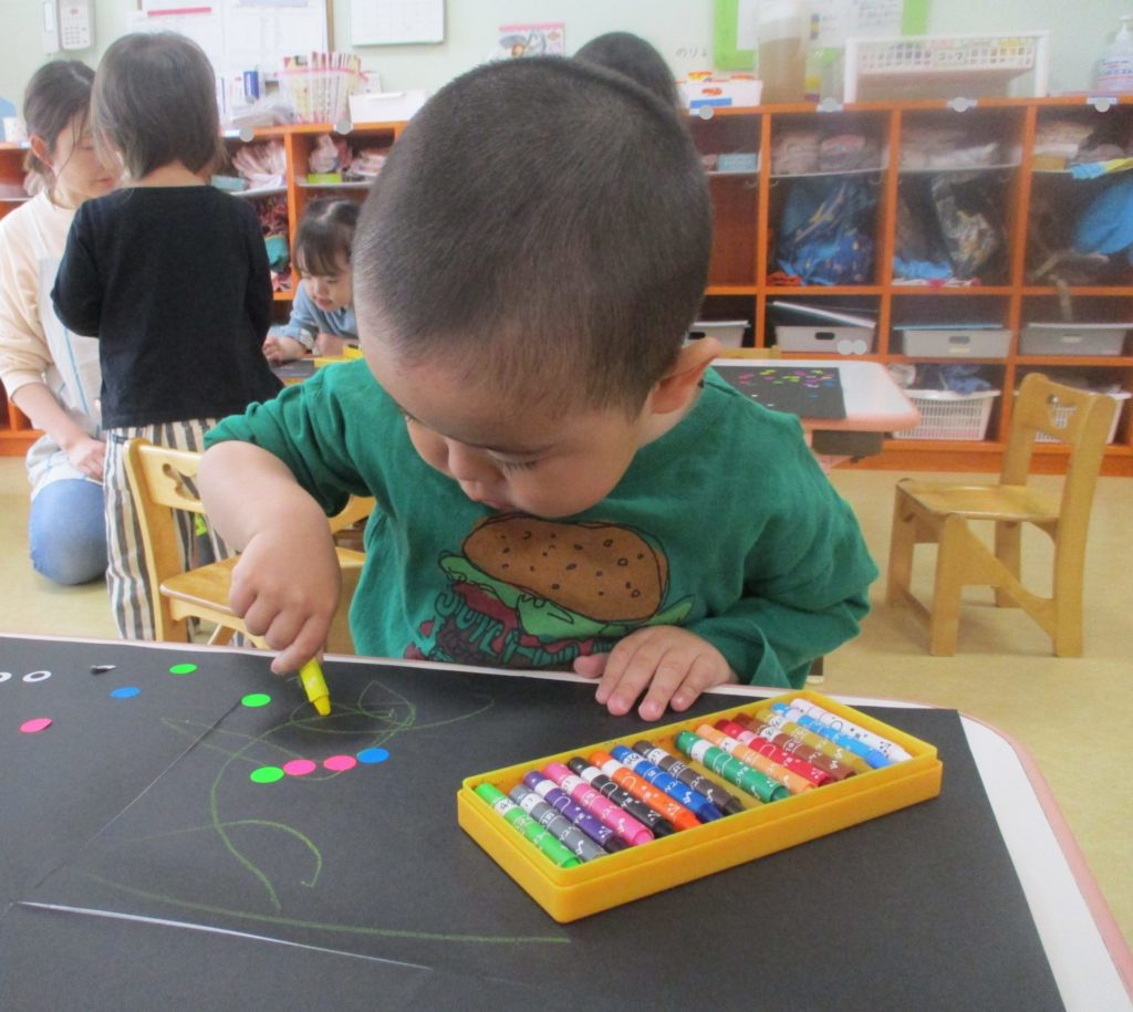 みんなでお絵描きに、シール貼り😊みんな夢中です!