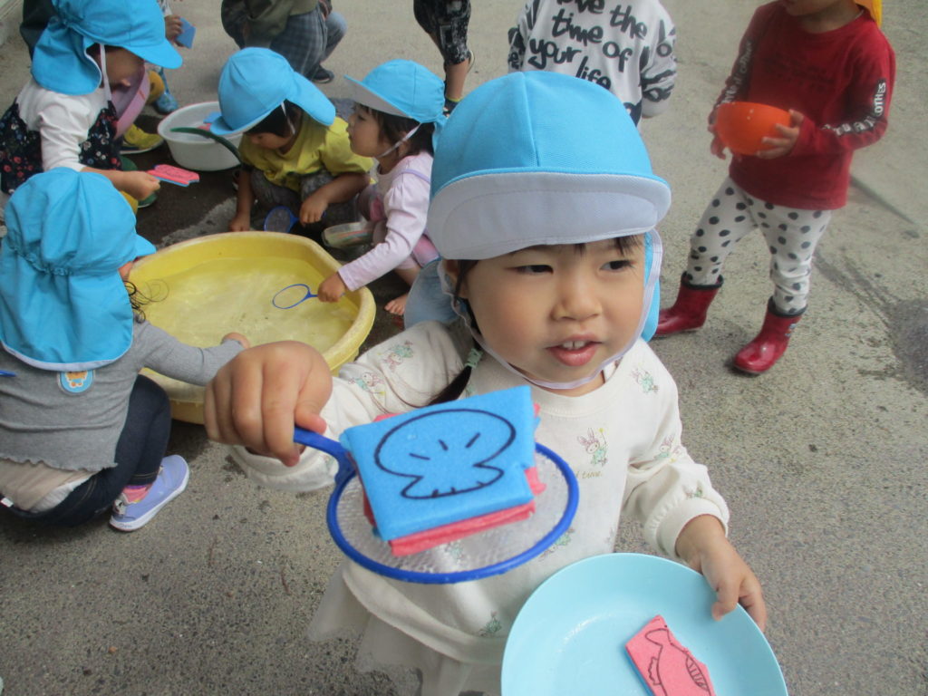 外で魚すくいもやったよ!たくさんすくえるかな~🐟