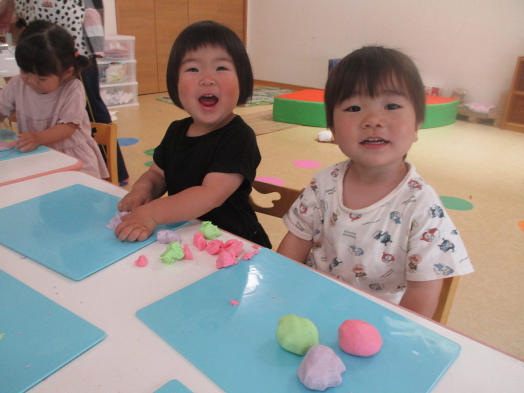米粉粘土もやったよ!いろんな色の米粉粘土✨ 混ぜると何色になるかな~🌈