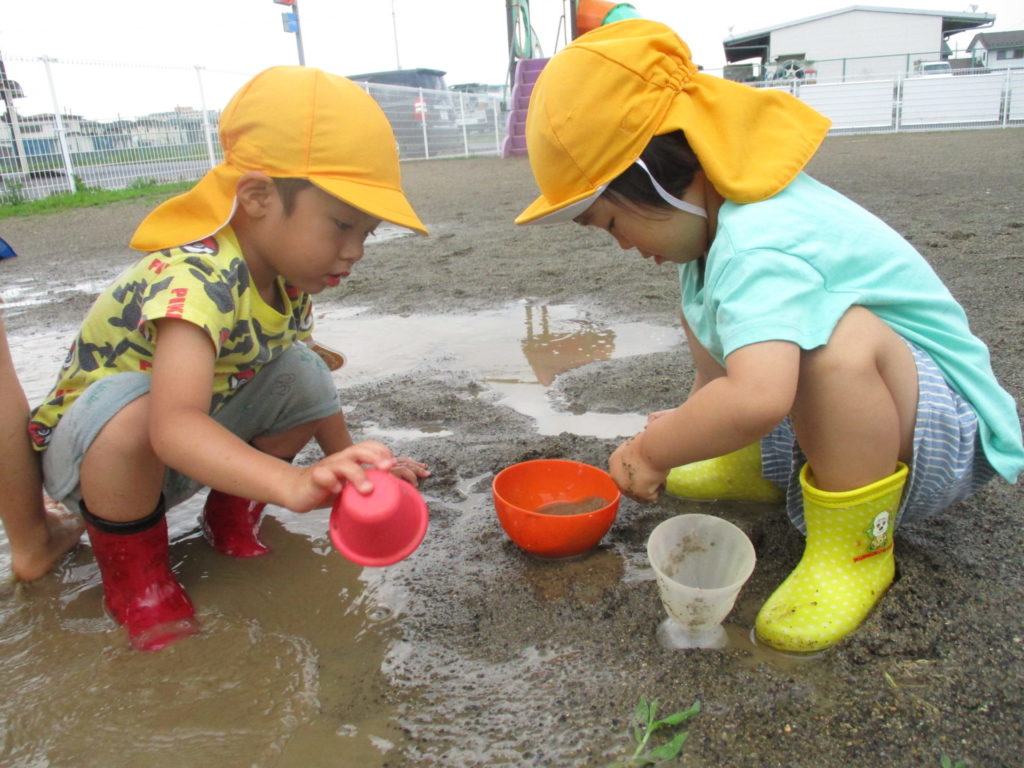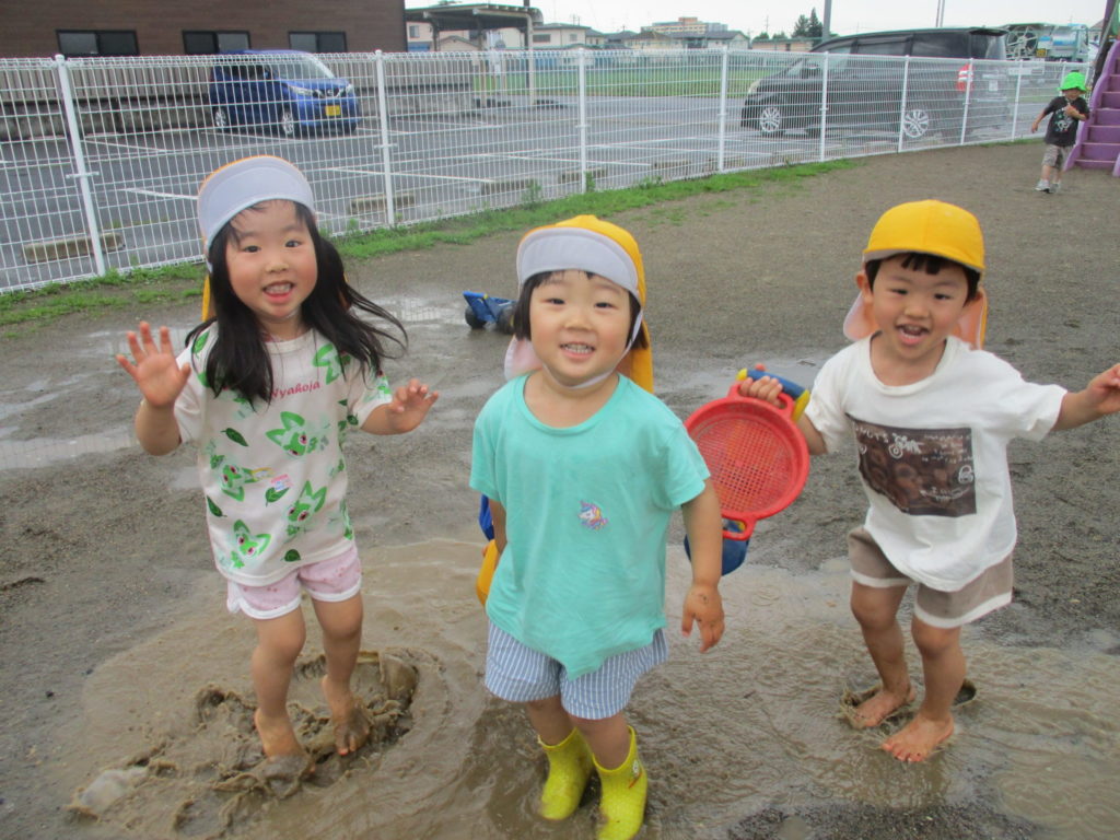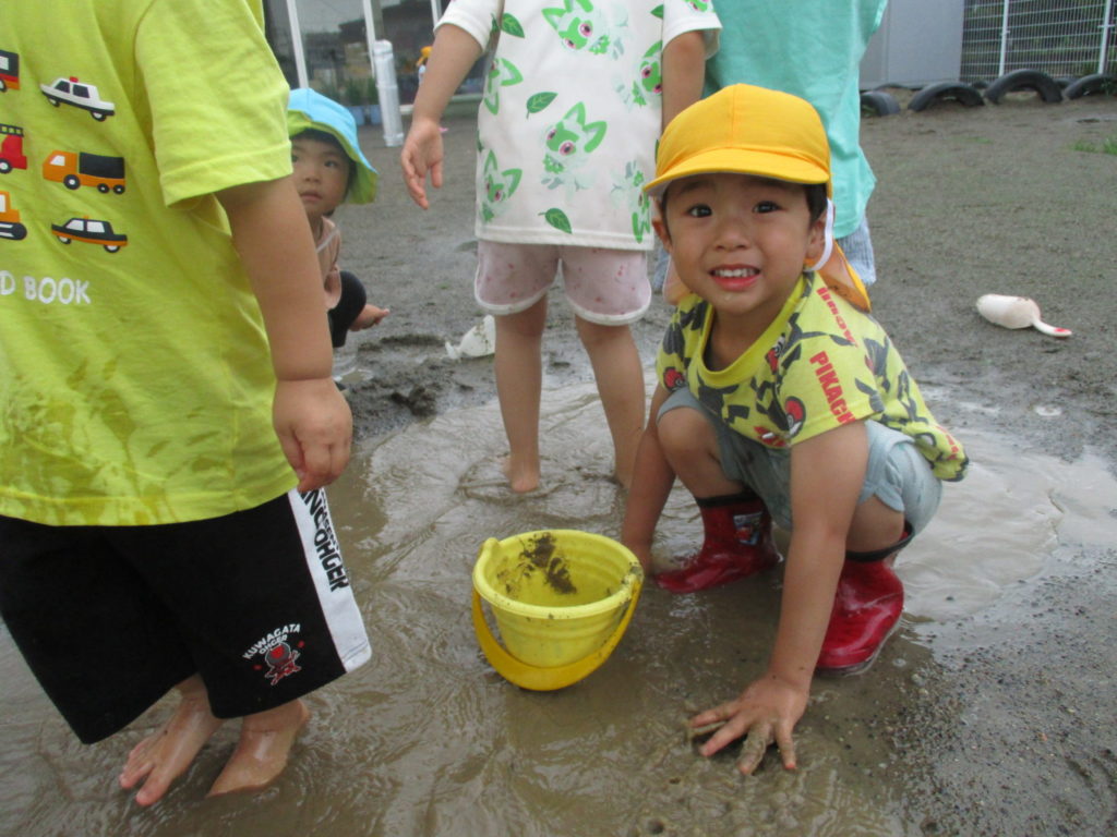 雨上がりの園庭…魅力が沢山🌦️🌂🌈水たまりでいっぱい遊んだよ😊✨🙂✨子どもたち、とってもいい表情です⭐