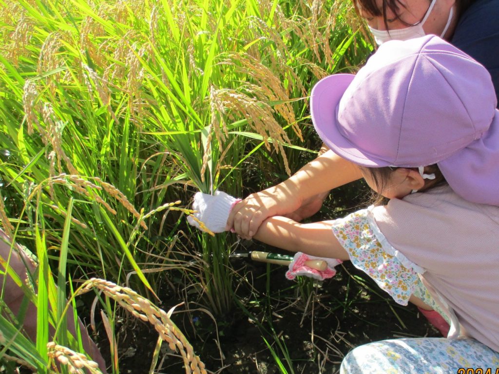 今年の稲も大きく育ちました✨ みんなで育てたお米の収穫!稲の刈り方をみんなでお勉強中!
