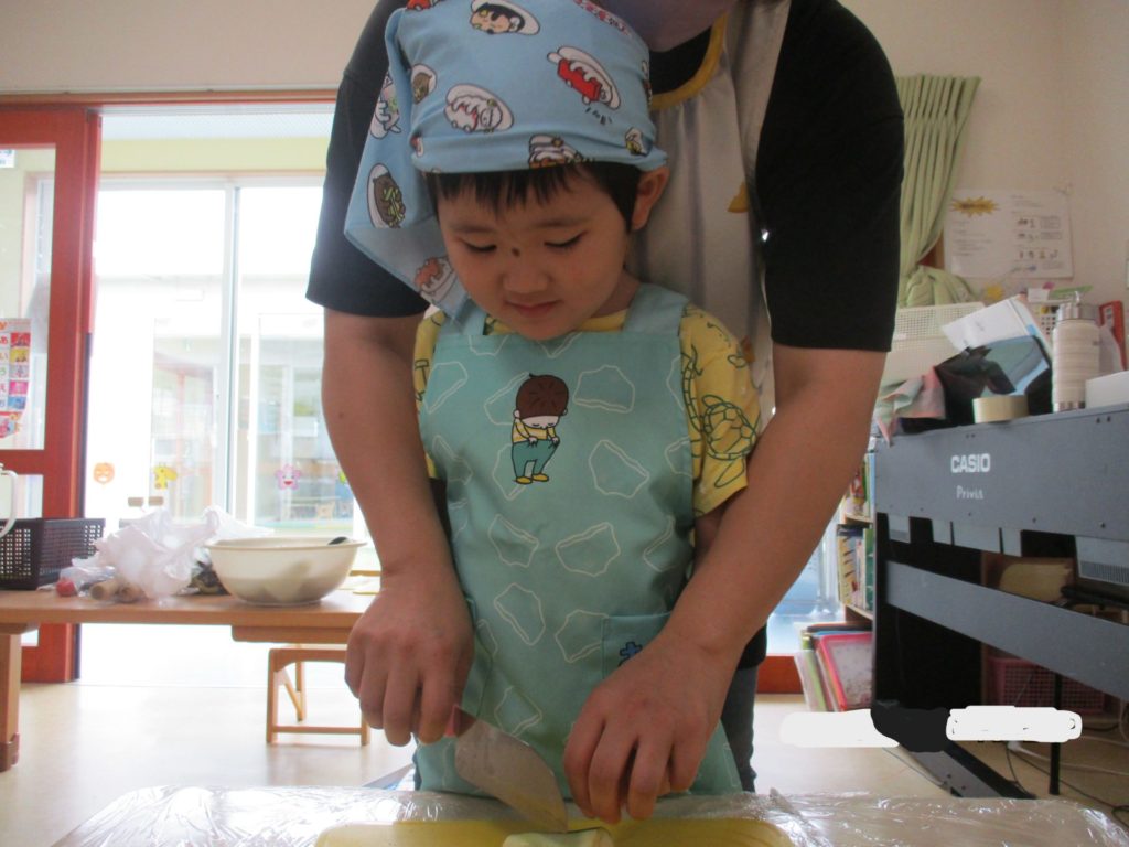 ほし組(3歳児)は、しめじ・こんにゃく・豆腐をちぎる、ちぎる、ちぎる・・・!!! き、き、きのこ🎶夢中になってちぎってましたよ!豆腐は崩れやすーい💦でも、感触が「ふわふわだね~」🤗 美味しい豚汁になるように、おいしくな~ […]
